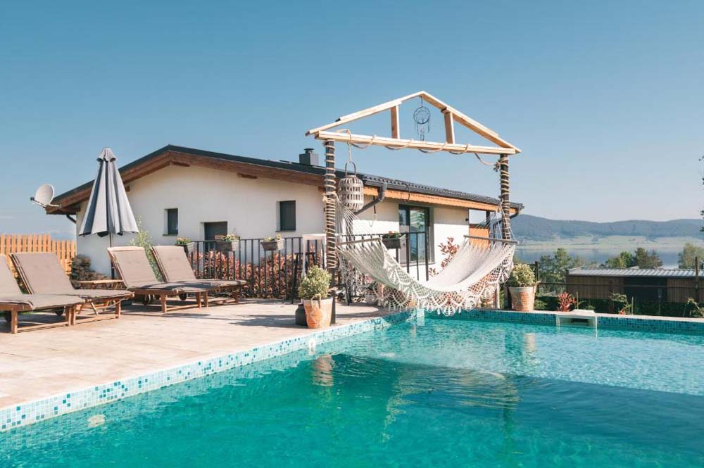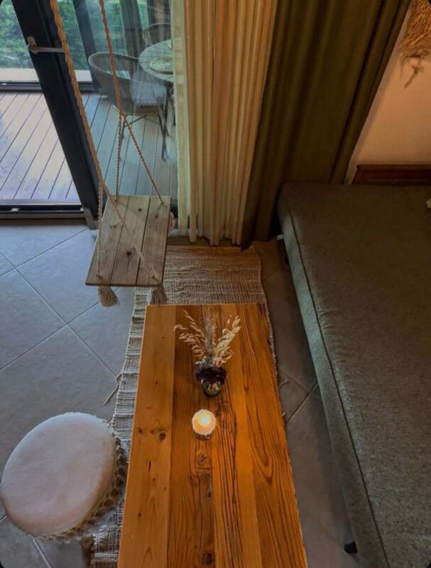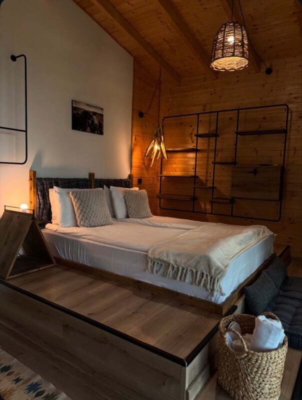 Състои се от хол, трапезария, две спални с една баня и тоалетна и веранда. Дивана в хола е разтегателен и с възможност за спане на още двама души.